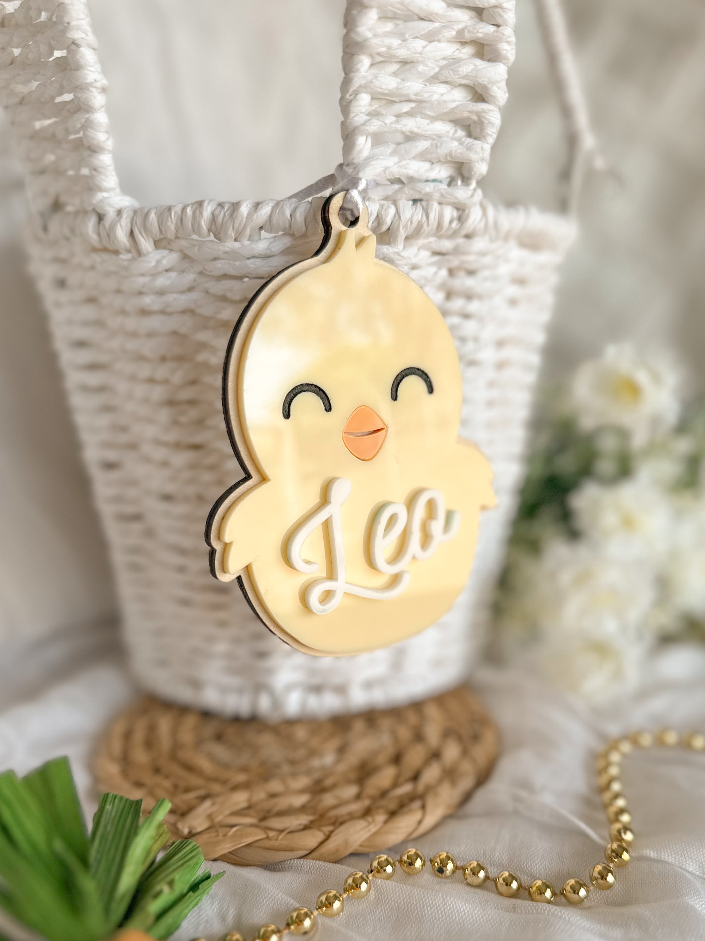 Personalised Acrylic Bow Bag Tag | Custom Name Backpack & Bag Tag | Ribbon Girls Easter Basket Tag