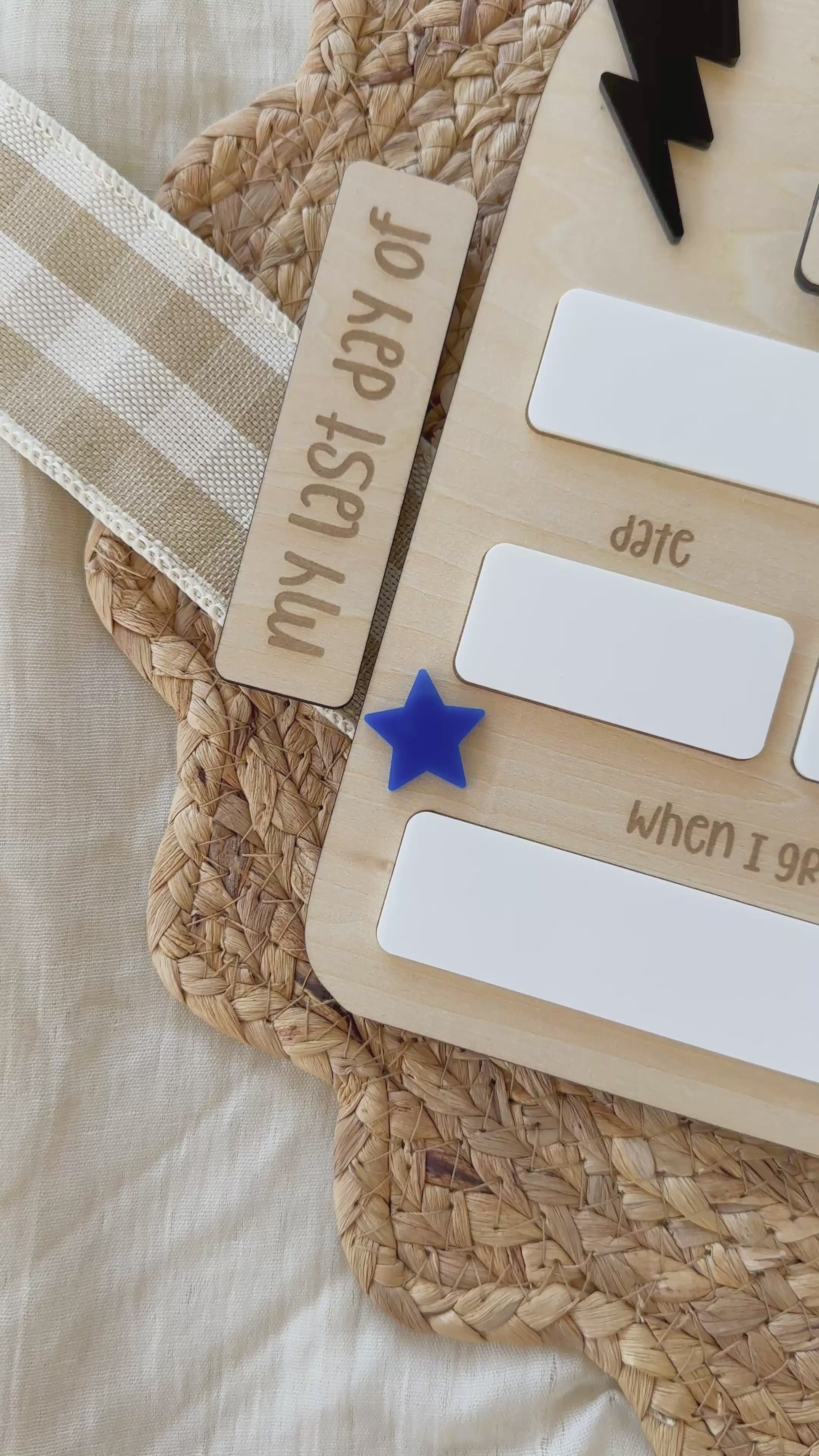 The board is personalised with your child’s name and includes interchangeable “my first day of” and “my last day of” tags, making it ideal for multiple school years. An optional interchangeable name feature allows the same board to be used for siblings. See link below for Extra Names 🤎