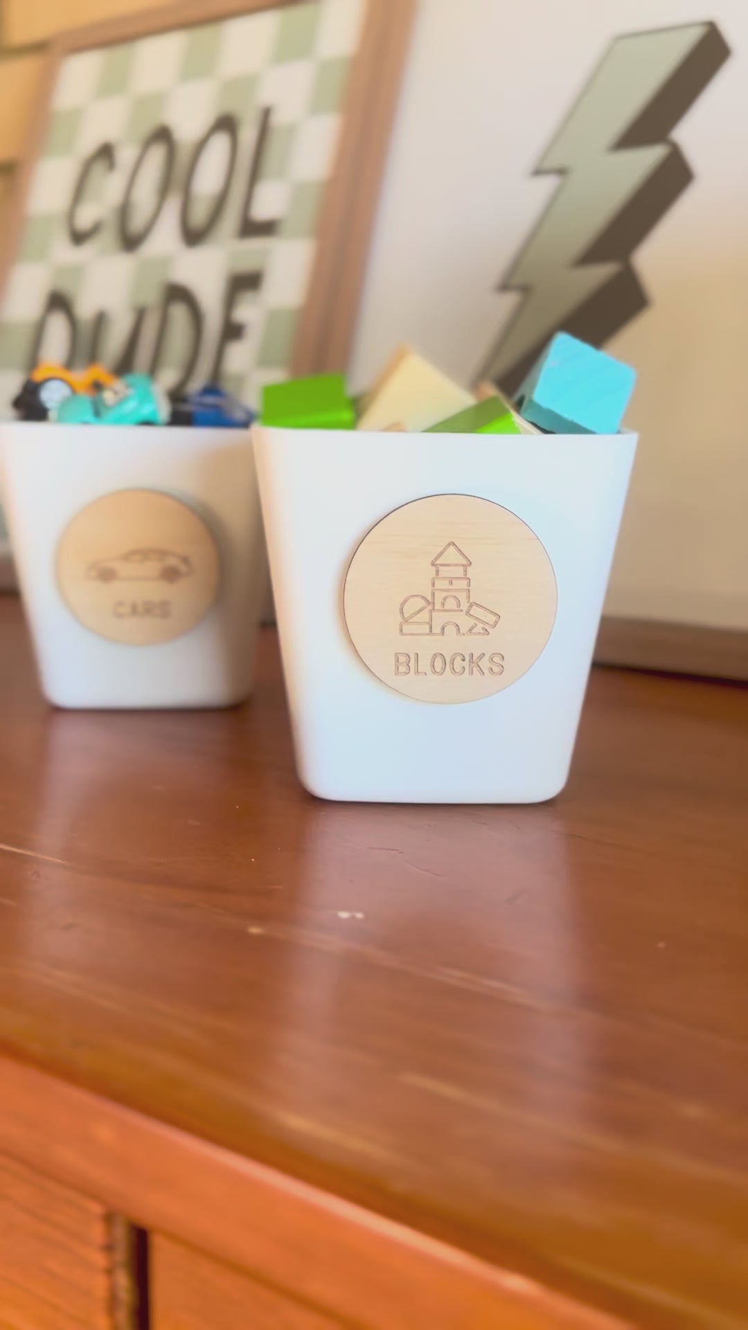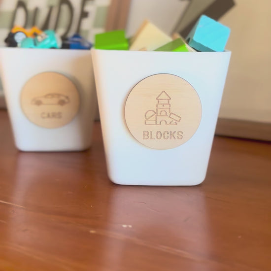 Wooden Toy Storage Labels | Personalised Kids Toy Storage Discs